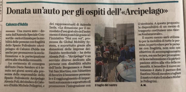 Sarà anche un momento dedicato alla consegna di un automezzo destinato alle attività sociali dell’Azienda Speciale Consortile che si è realizzato grazie alla collaborazione con GMS SRL per il progetto “NOI CON VOI” e alle sponsorizzazioni di numerose attività produttive dell’Ambito Territoriale Isola Bergamasca e Bassa Val San Martino.