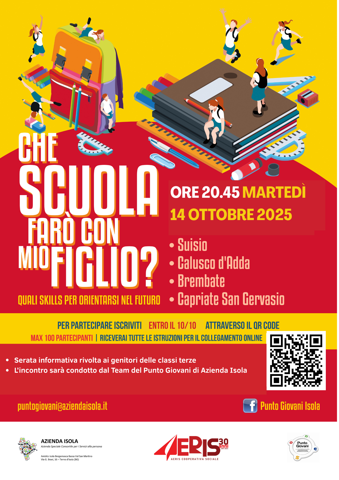 Martedì 14 ottobre ore 20,45 per Istituti Compensivi di Suisio, Calusco d'Adda, Brembate e Capriate San GervasioVOLANTINO