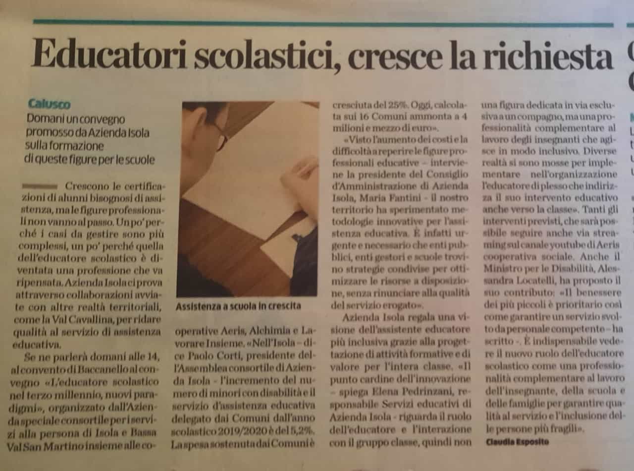 Atti del Convegno https://www.coopaeris.it/eventi/leducatore-scolastico-nel-terzo-millennio
