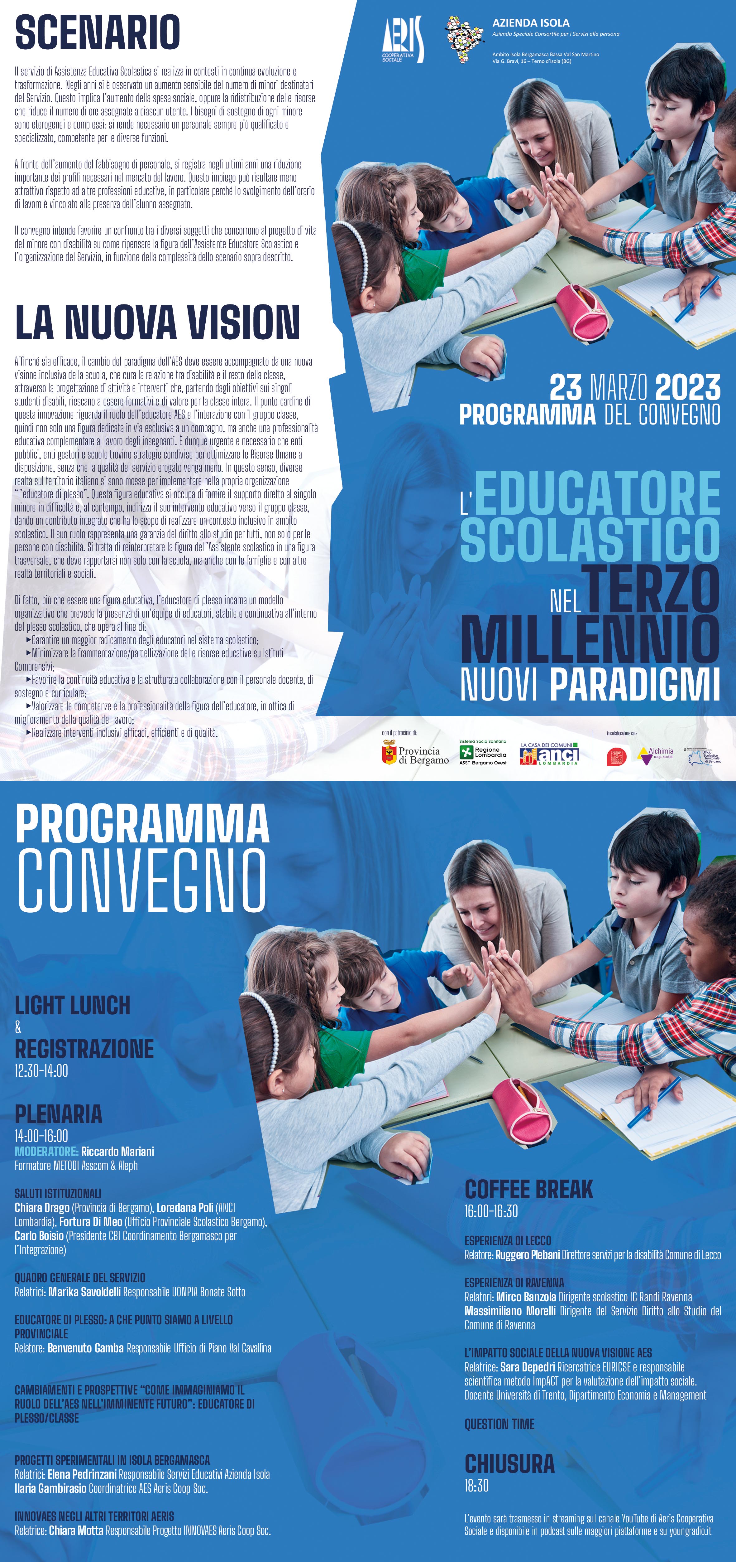CONVEGNO L'EDUCATORE SCOLASTICO NEL TERZO MILLENNIO: NUOVI PARADIGMI - Giovedì 23 marzo 2023 - Convento di Baccanello, Calusco d'Adda (BG)