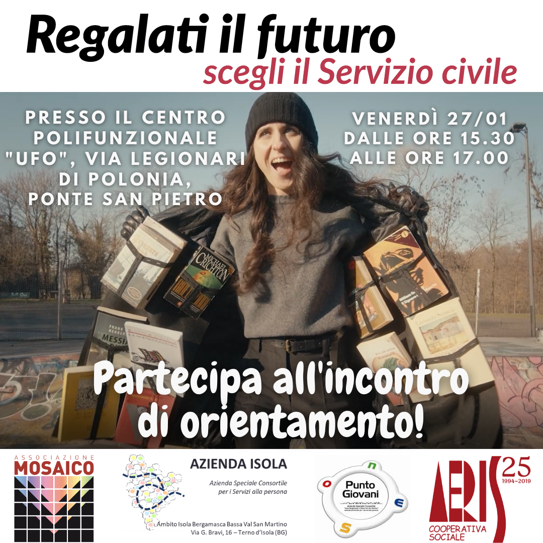 24 gennaio 2023GEN242023Incontro di orientamento per il Servizio Civile Incontro di orientamento per il Servizio Civile Venerdì 27 gennaio dalle ore 15,30 alle 17presso Centro Polifunzionale "UFO" - Via Legionari di Polonia, Ponte San PietroVOLANTINO<<< ... 252253254255256257258259260 ... >>>