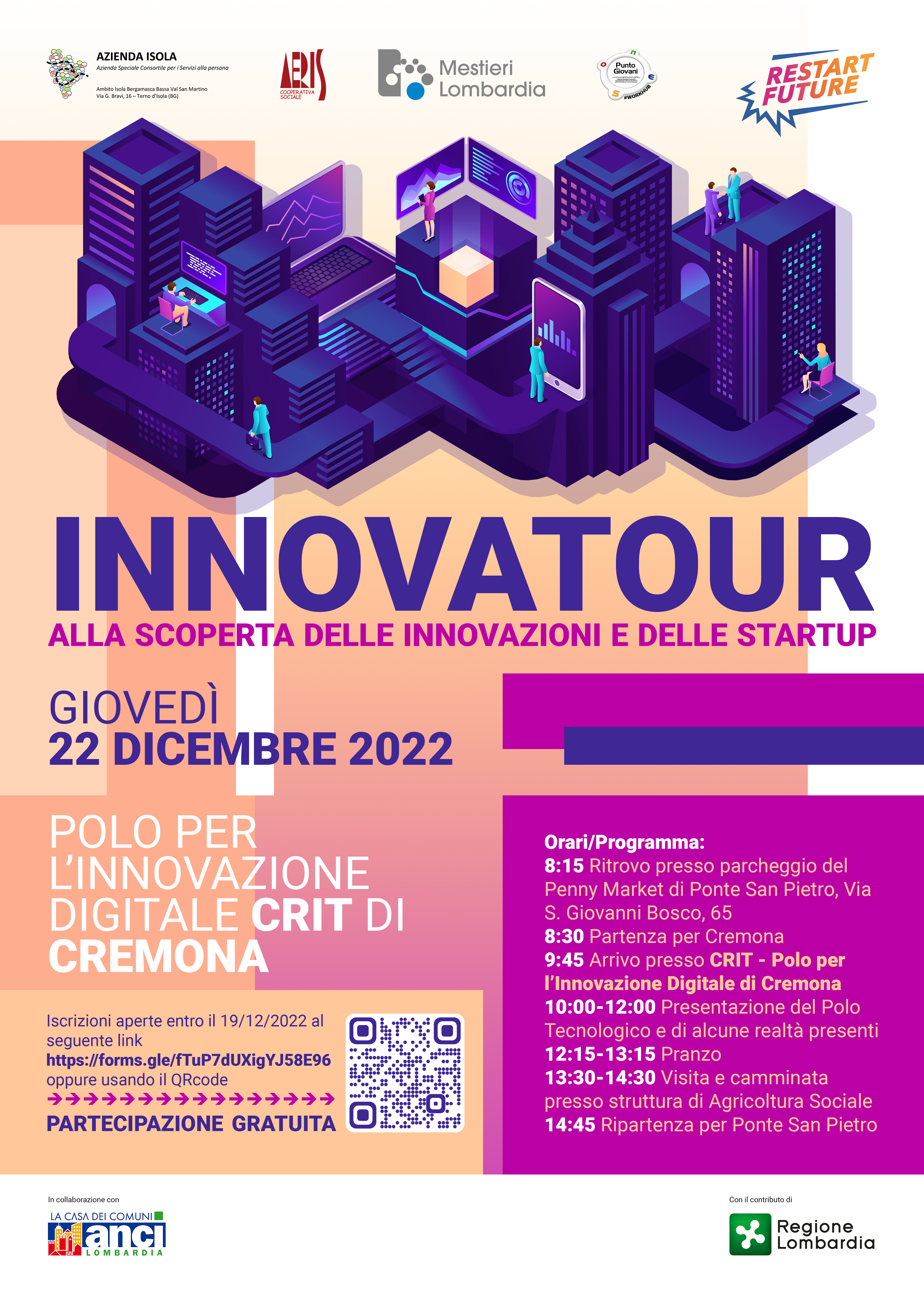Innovatour organizzato all'interno del progetto di Ambito #Workhub e rivolto ai giovani dai 18 ai 34 anni dell'Isola Bergamasca e Bassa Val San Martino.
