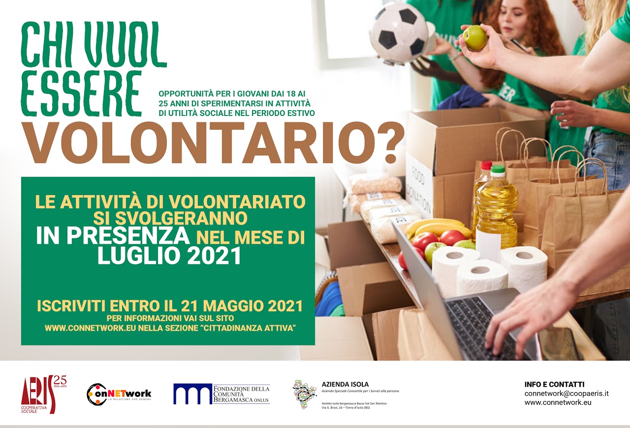 Con(NET)work è un progetto di Aeris Cooperativa Sociale, finanziato da Fondazione della Comunità Bergamasca, realizzato in sinergia con Azienda Isola attraverso il servizio di Politiche Giovanili dell’Ambito territoriale Isola Bergamasca e Bassa Val San Martino.