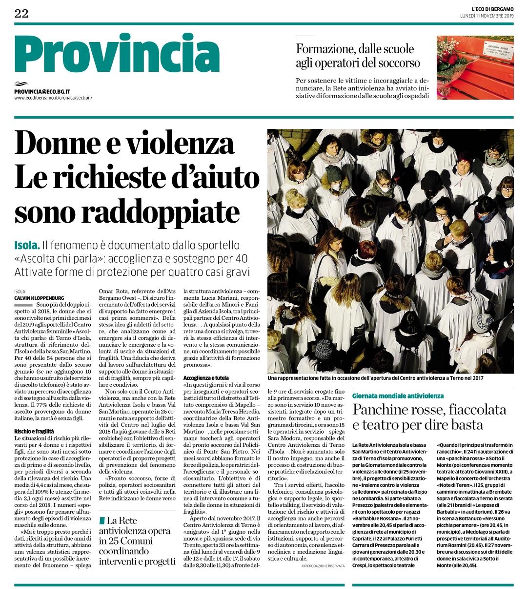 12 novembre 2019NOV122019Rassegna stampa Centro Antiviolenza femminile "Ascolta chi parla"L'Eco di Bergamo del 11.11.19Ora inizio: 10:30Ora fine: 08:30<<< ... 474475476477478479480481482 ... >>>