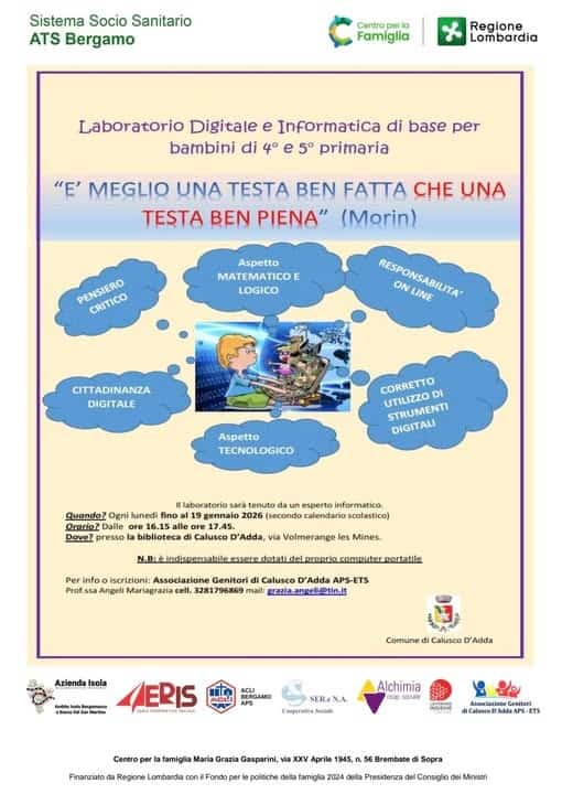 Per informazioni: 3426276359 oppure centroperlafamiglia-brembatesopra@coopaeris.it
